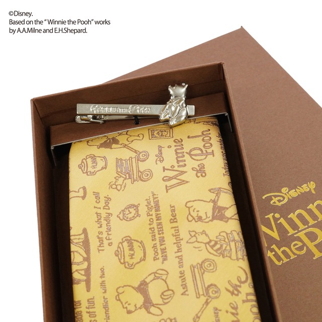 DISNEY/ネクタイ&タイバー BOXセット (くまのプーさん カリグラフィ柄×お座りタイバー)