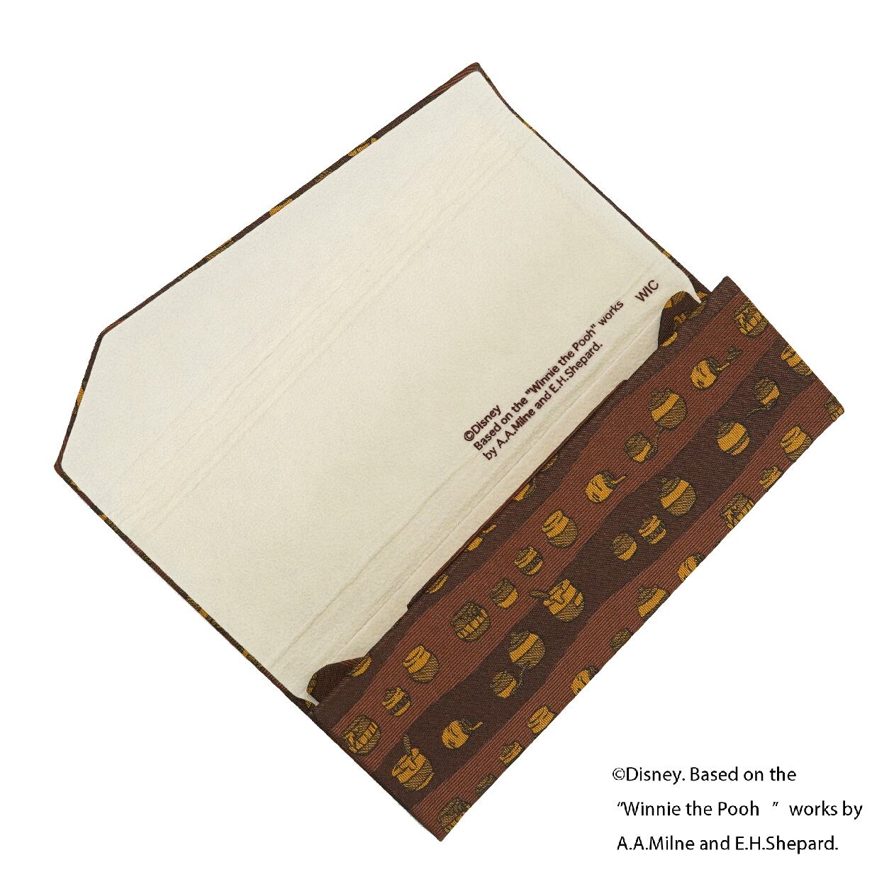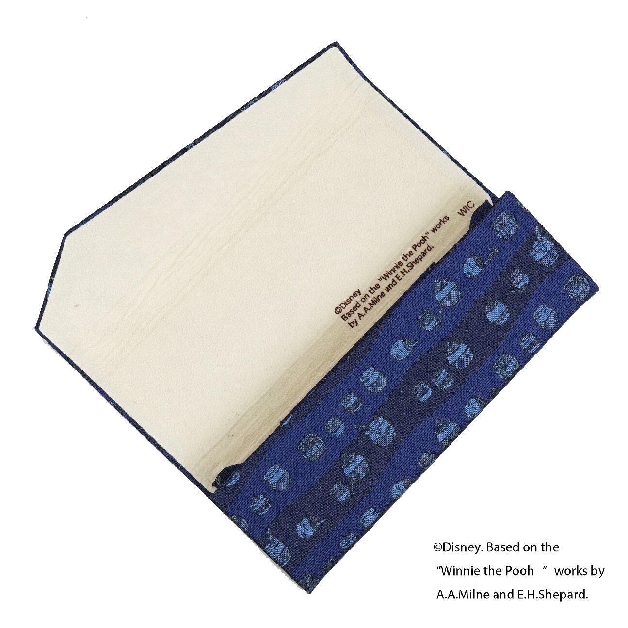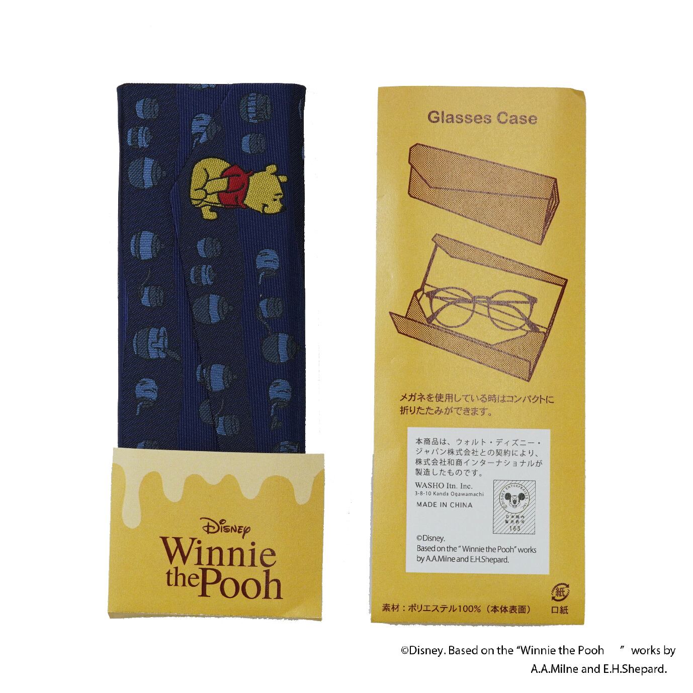 くまのプーさん柄で可愛らしくデザインされた、折りたためるスリムなメガネケース。
