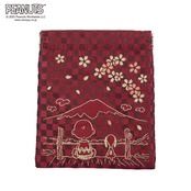 チャーリー・ブラウンとスヌーピーが富士山を眺めながらたたずむようなデザインの和テイストのばねぐちポーチです。