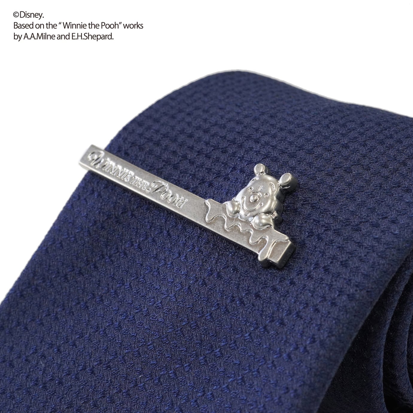 くまのプーさんが可愛らしく“ひょっこり”と顔を出した、遊び心あふれるデザインのネクタイバー。