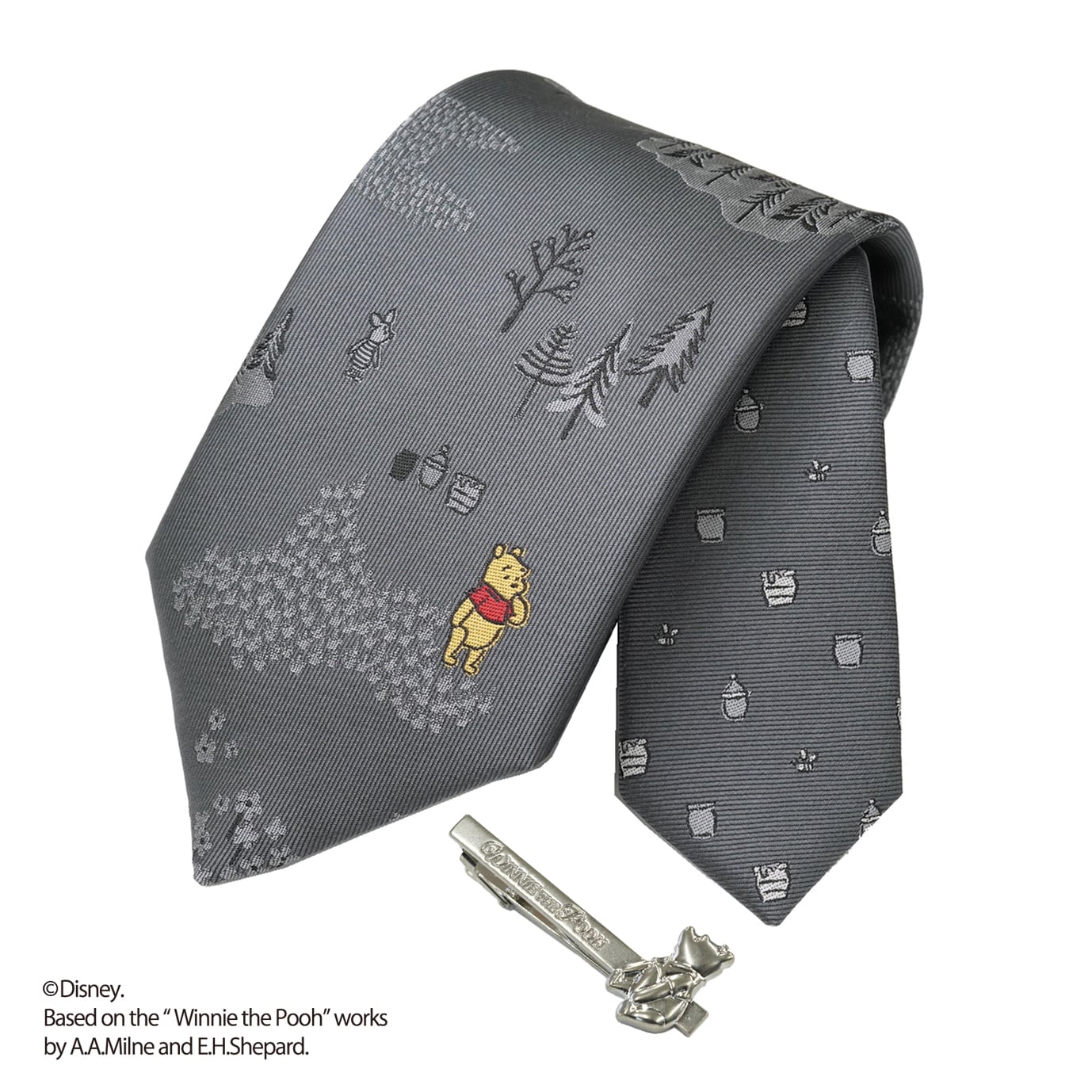 タイバーは、プーさんが可愛らしく“ちょこん”とお座りした、遊び心あふれるデザイン。