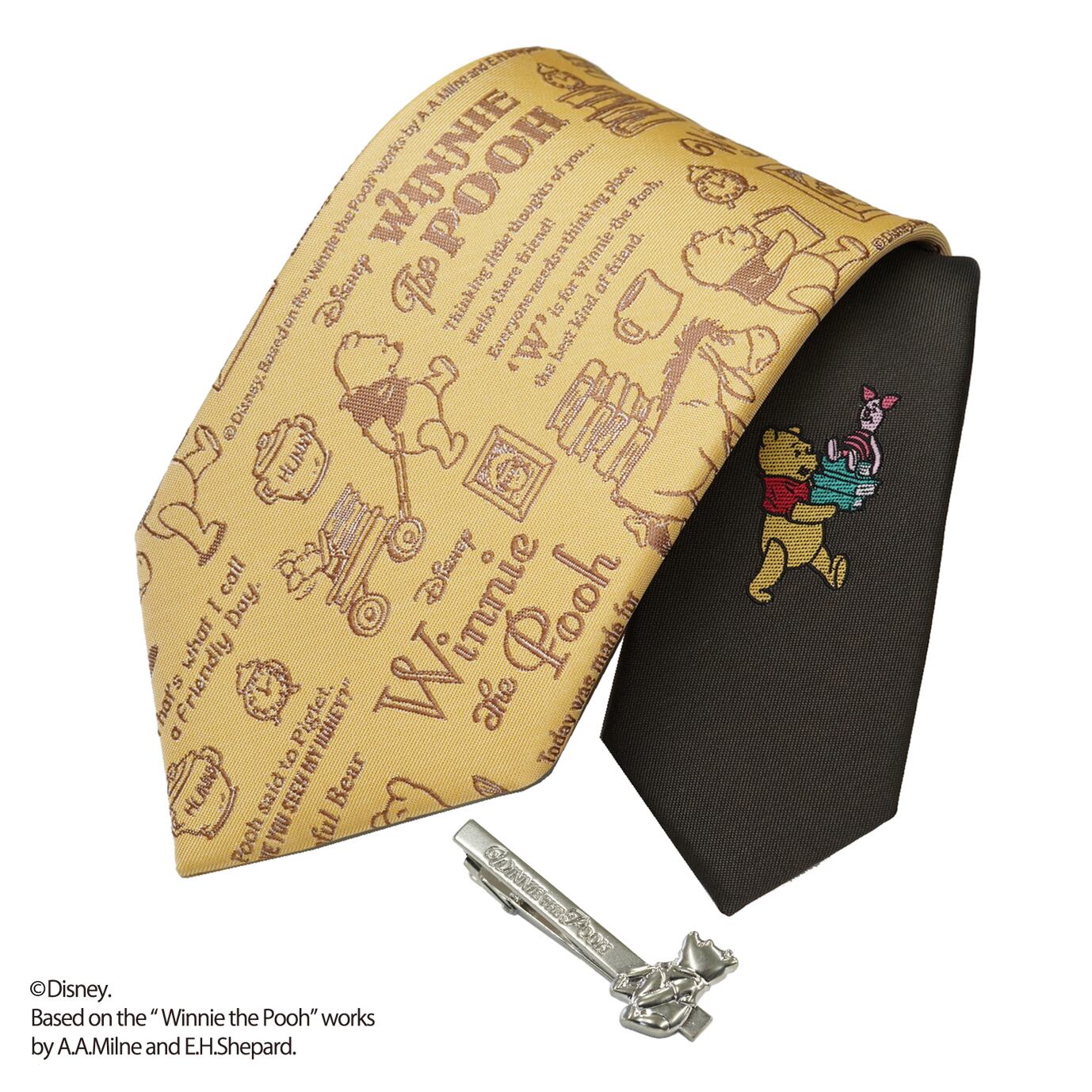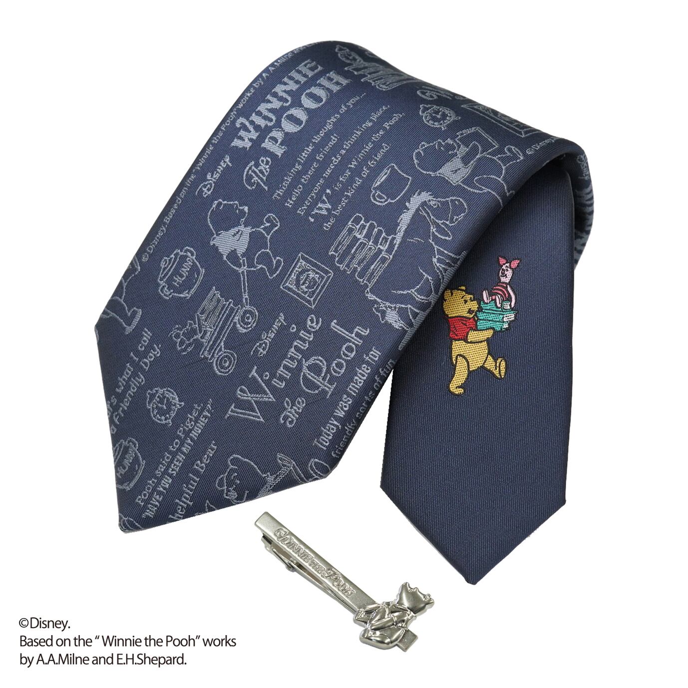 くまのプーさんのカリグラフィー柄ネクタイ。