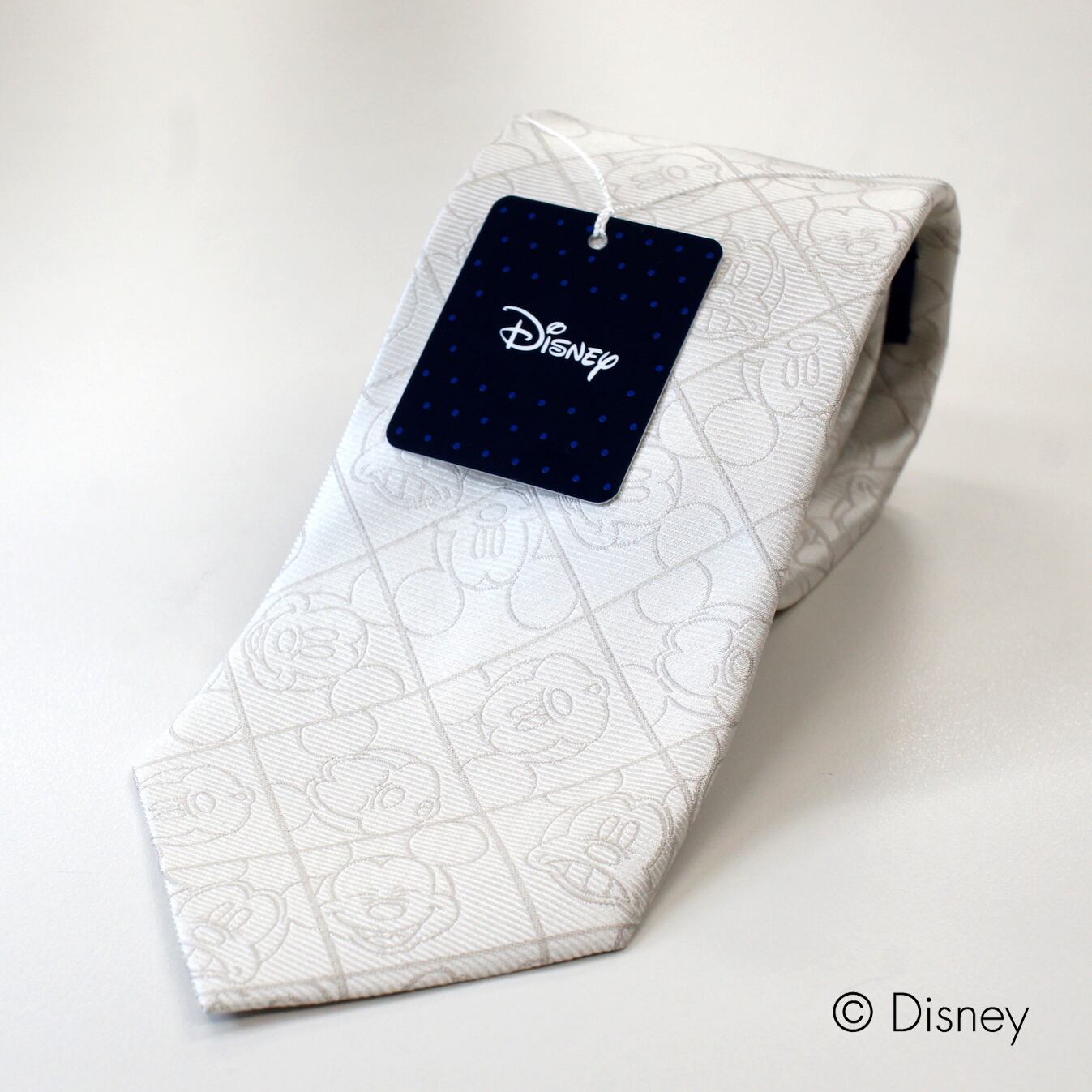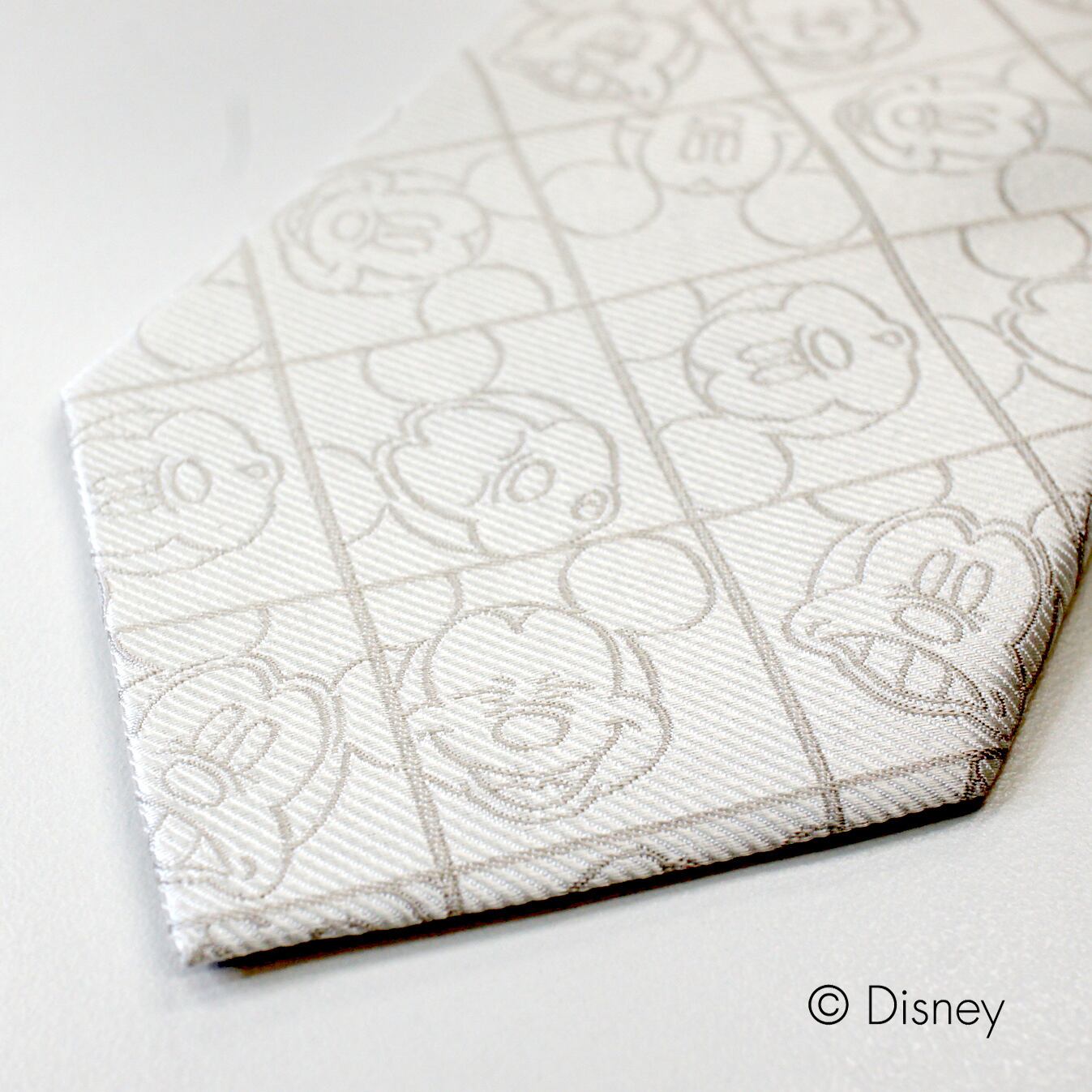 織り柄でミッキーの顔の表情がデザインされたネクタイ。