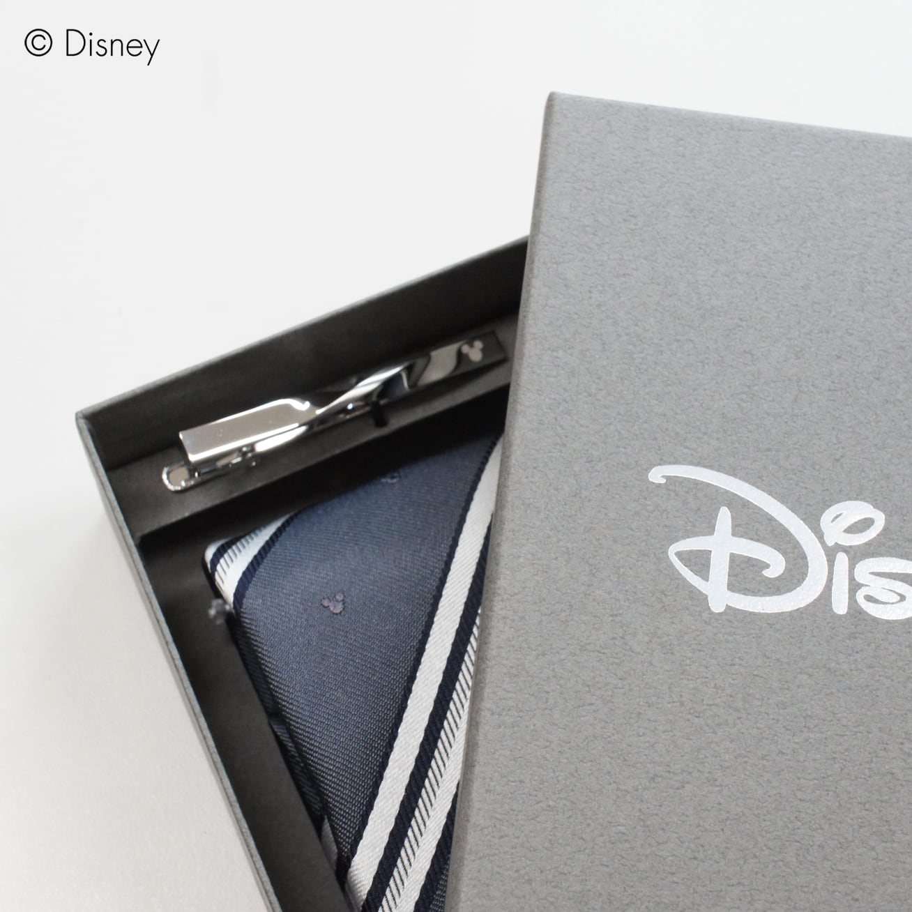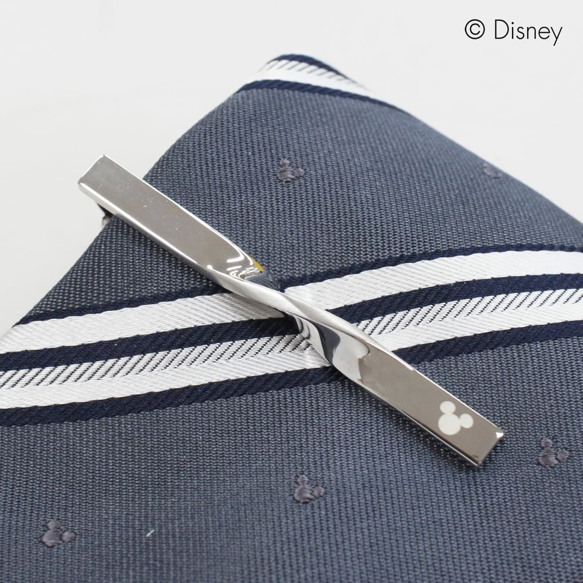 タイピンにもさりげなく、ミッキーの可愛らしい顔のシルエット(三つ丸)がワンポイントでデザインされています。