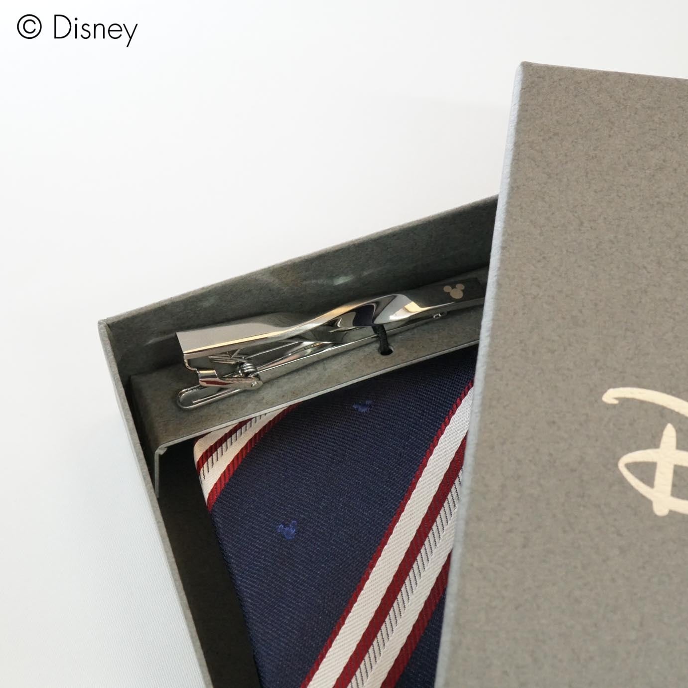 タイピンにもさりげなく、ミッキーの可愛らしい顔のシルエット(三つ丸)がワンポイントでデザインされています。