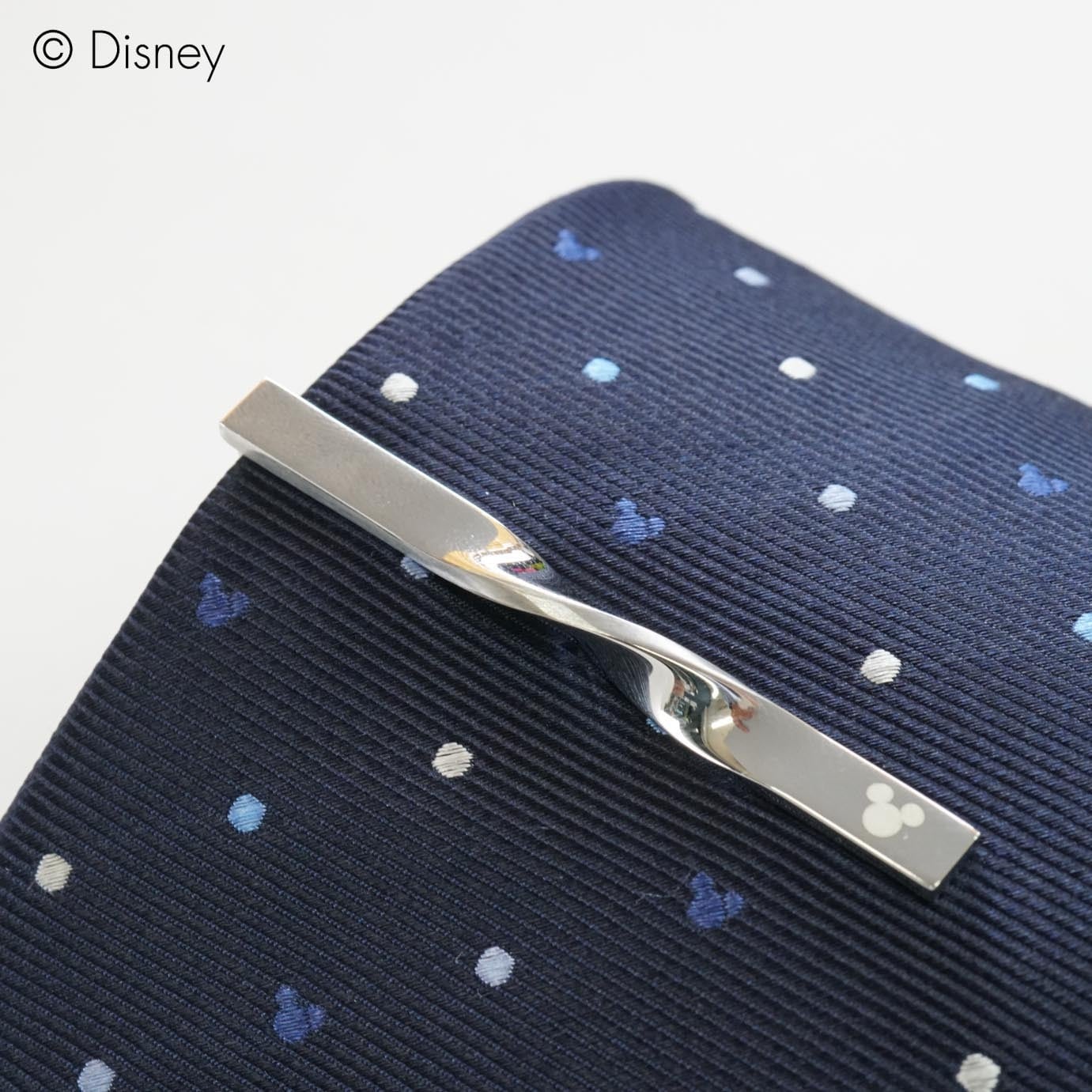タイピンにもさりげなく、ミッキーの可愛らしい顔のシルエット(三つ丸)がワンポイントでデザインされています。