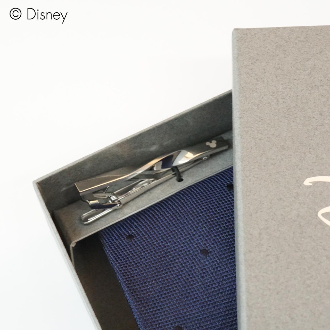 タイピンにもさりげなく、ミッキーの可愛らしい顔のシルエット(三つ丸)がワンポイントでデザインされています。
