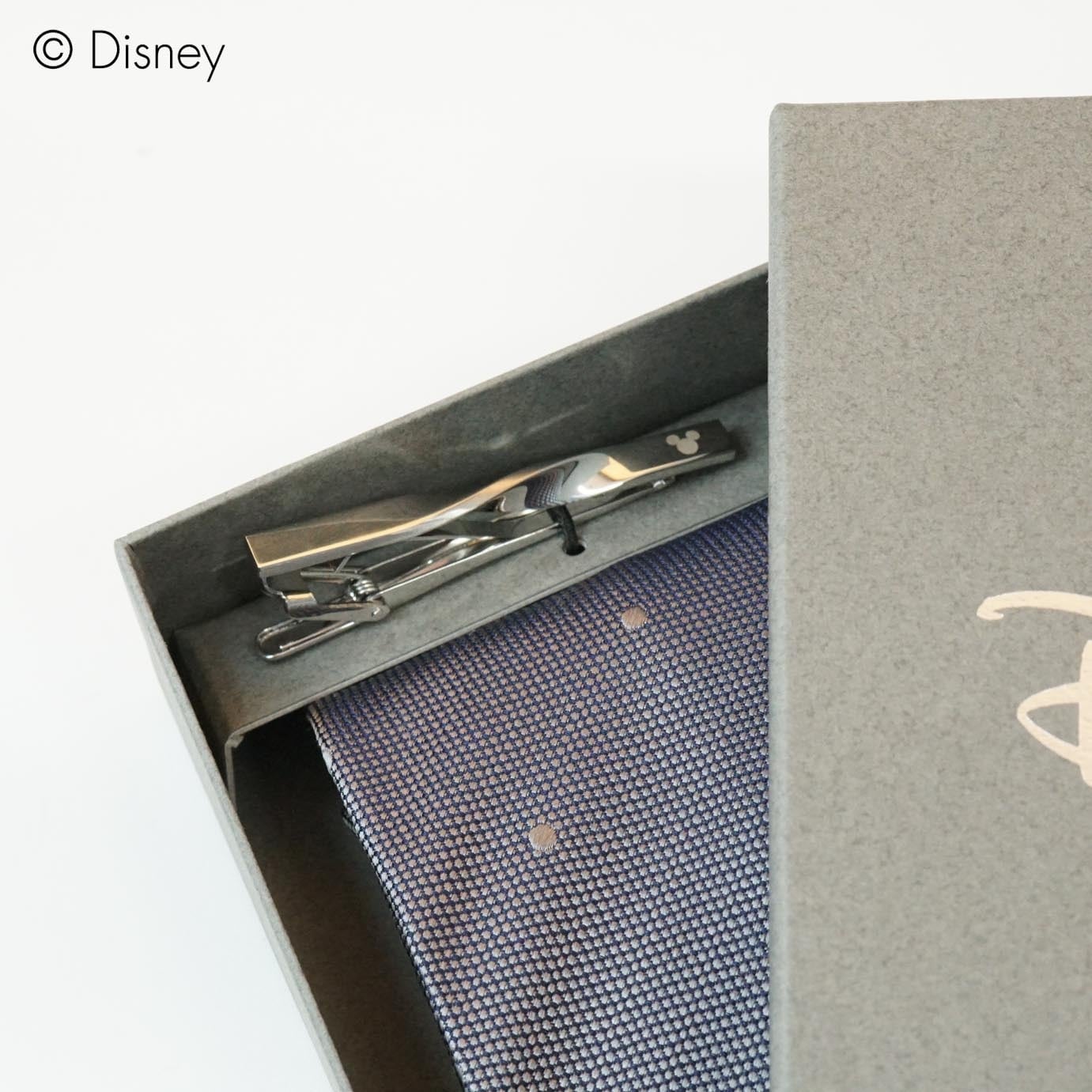 タイピンにもさりげなく、ミッキーの可愛らしい顔のシルエット(三つ丸)がワンポイントでデザインされています。