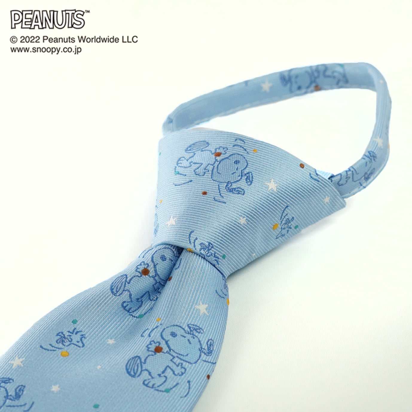 ピーナッツ/ワンタッチネクタイ (スヌーピー:ダンス柄・水色)
