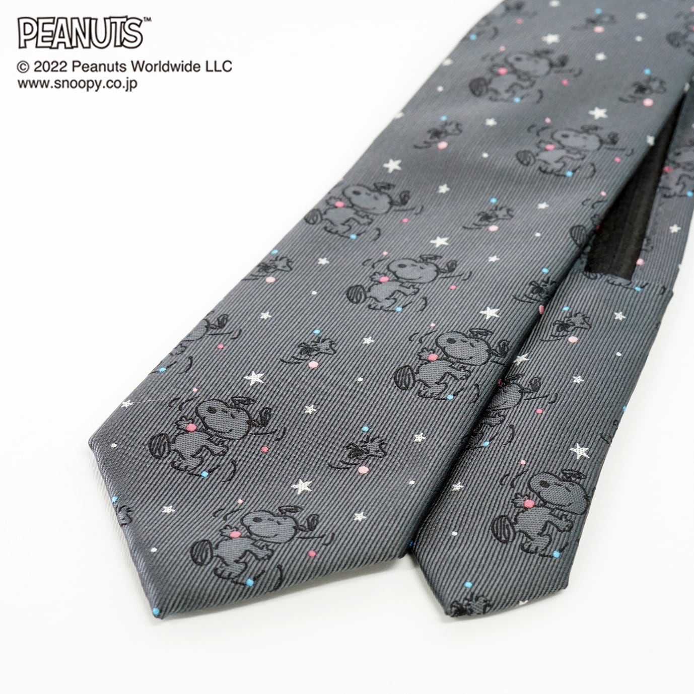 ピーナッツ/ワンタッチネクタイ (スヌーピー:ダンス柄・チャコールグレー)