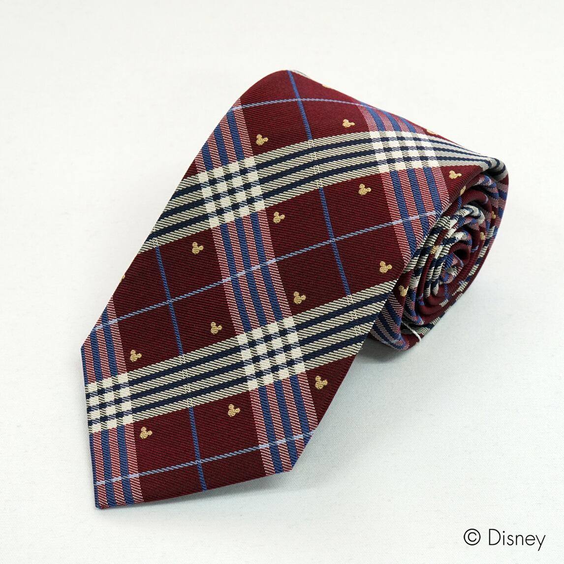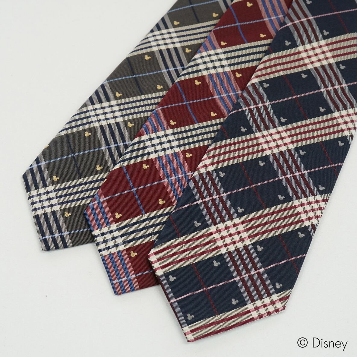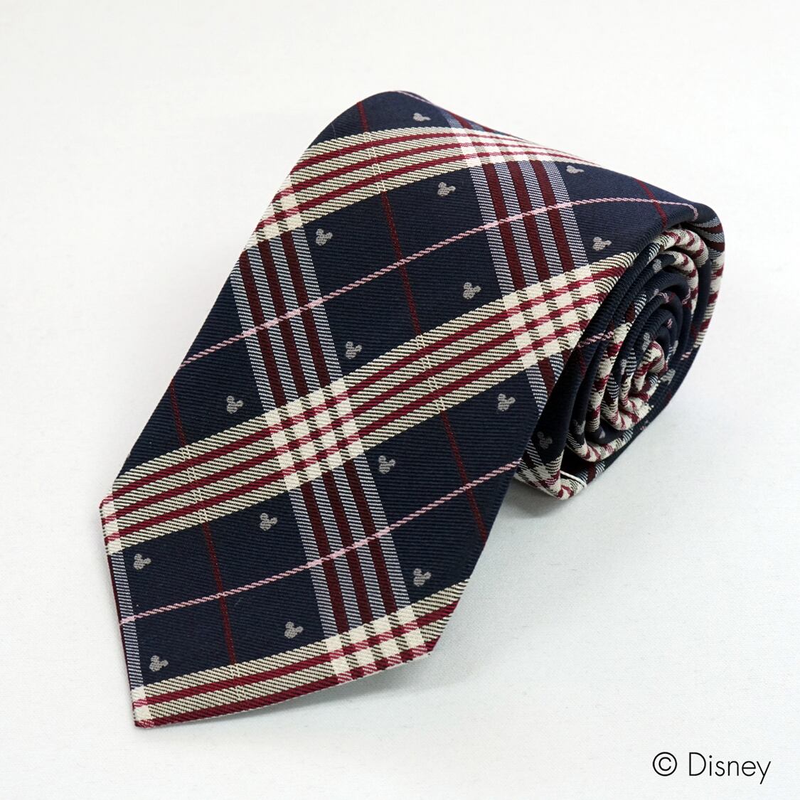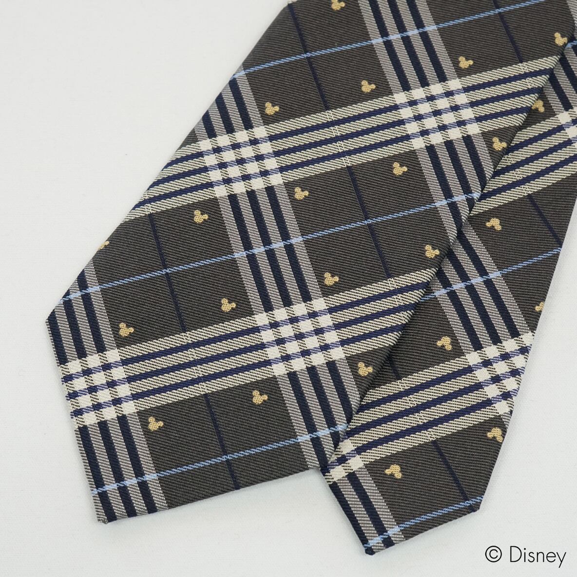 チェック柄にミッキーのミツマルシルエットがデザインされたネクタイ。