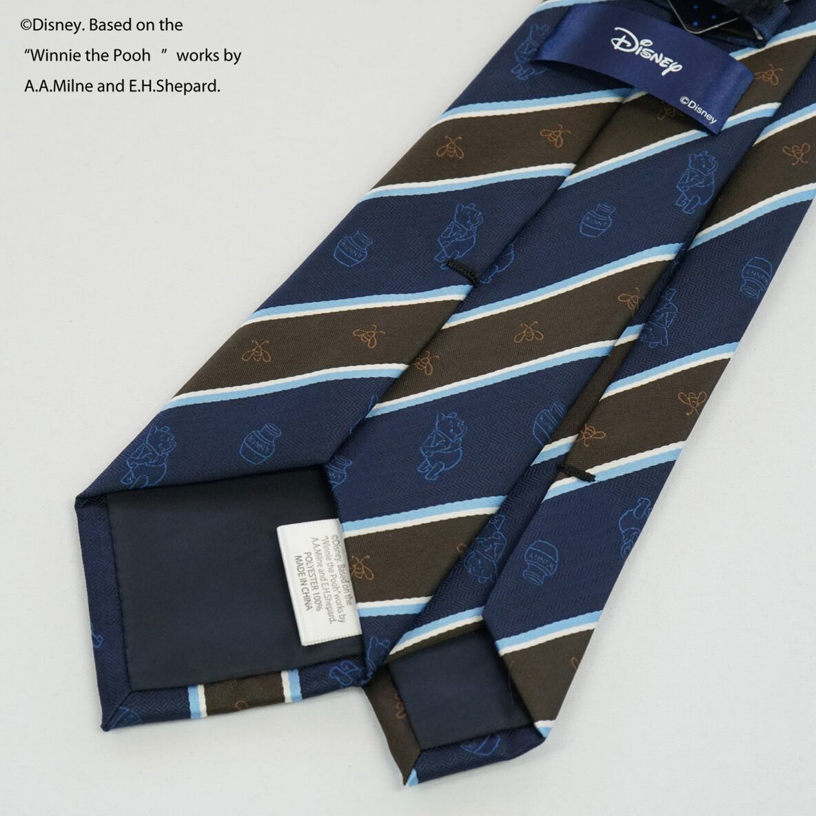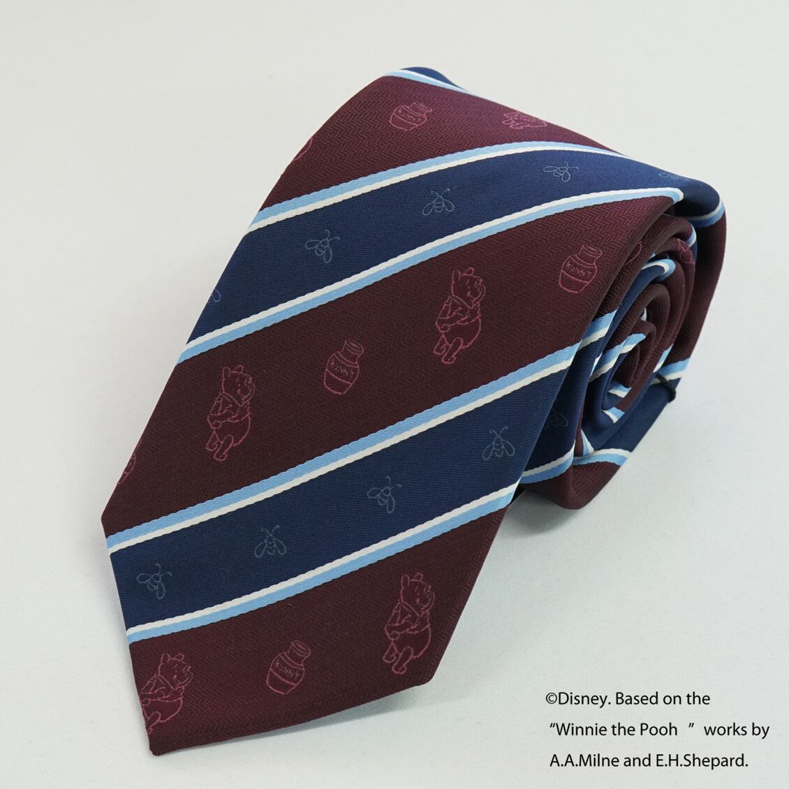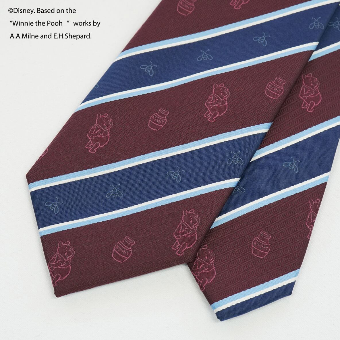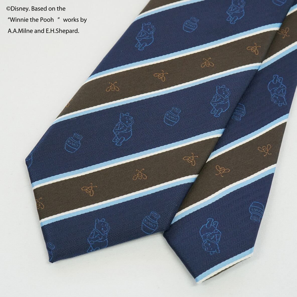 ディズニーキャラクターのプーさんがモチーフのストライプ柄ネクタイです。シンプルなデザインなので、どんなスーツにも合わせやすく、ビジネスシーンやパーティーなど、様々なシーンで活躍してくれます。