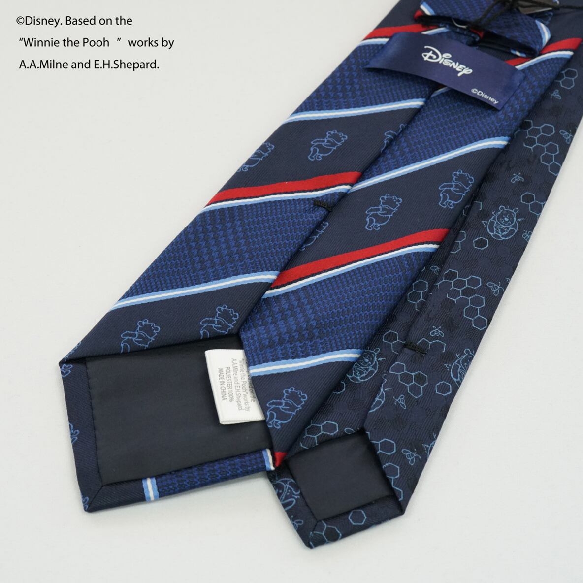 ディズニーキャラクターのプーさんがモチーフのストライプ柄ネクタイです。シンプルなデザインなので、どんなスーツにも合わせやすく、ビジネスシーンやパーティーなど、様々なシーンで活躍してくれます。