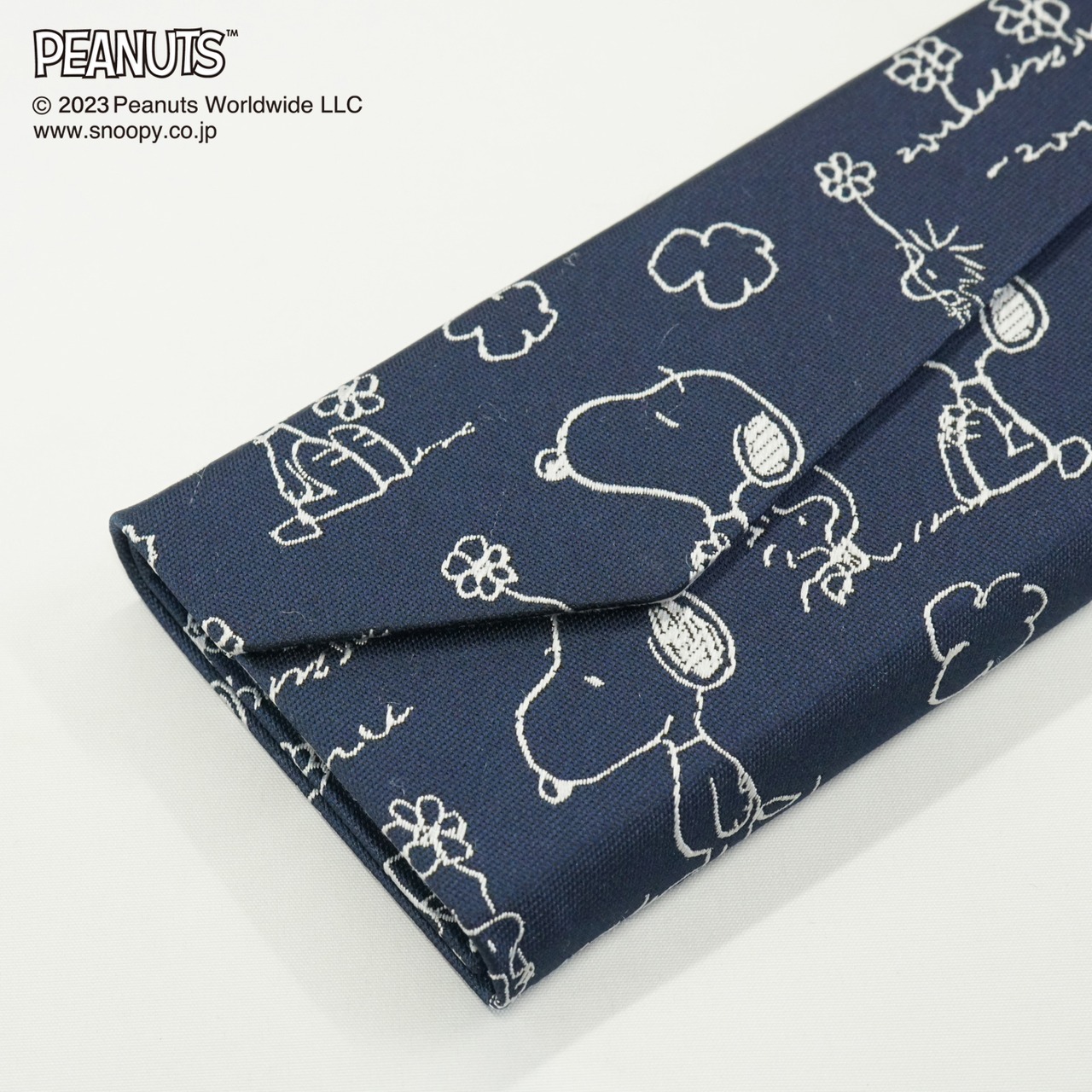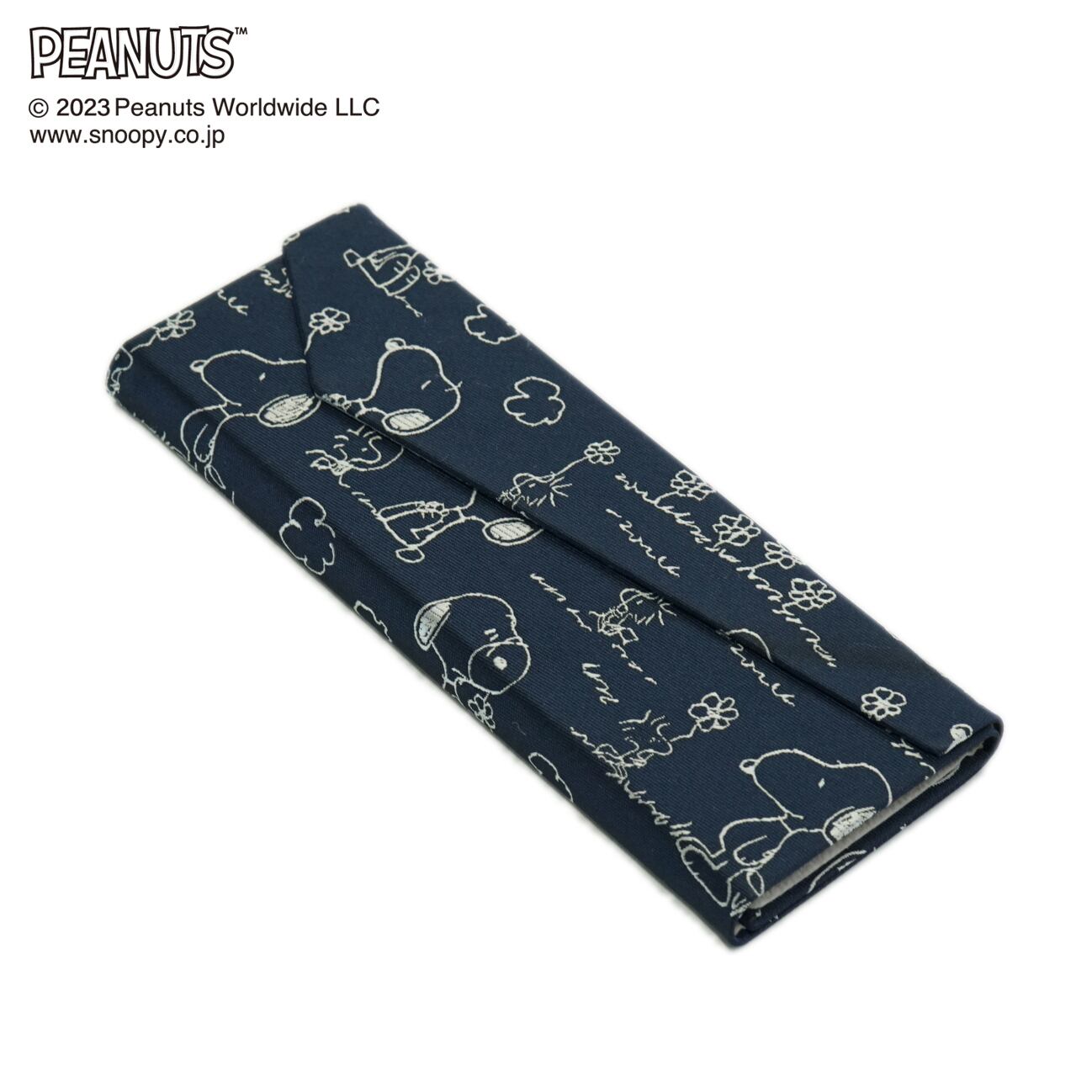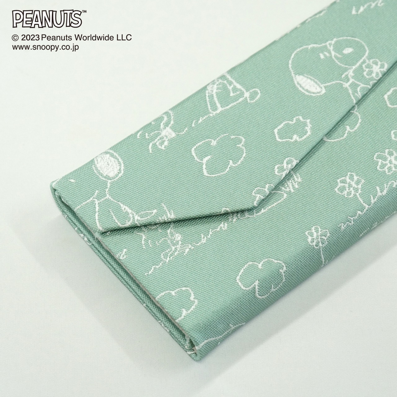 スヌーピーの柄で可愛らしくデザインされた、折りたためるスリムなメガネケース。