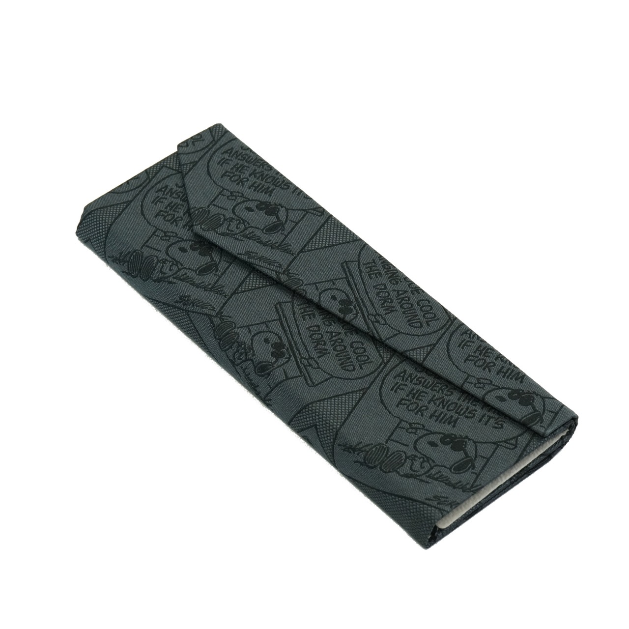 スヌーピーの柄で可愛らしくデザインされた、折りたためるスリムなメガネケース。