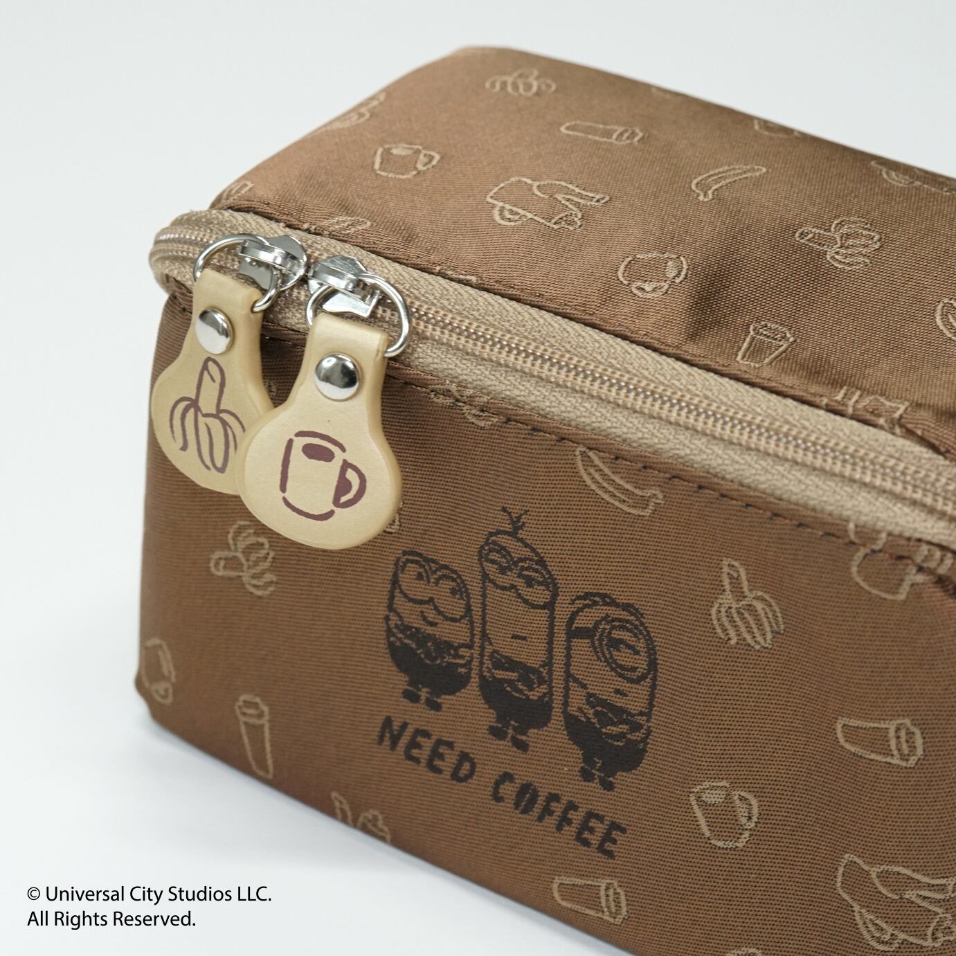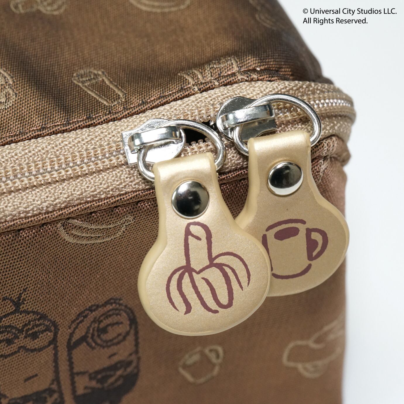 大きめのバナナとコーヒーカップのチャームはファスナーの開閉をスムーズにします。