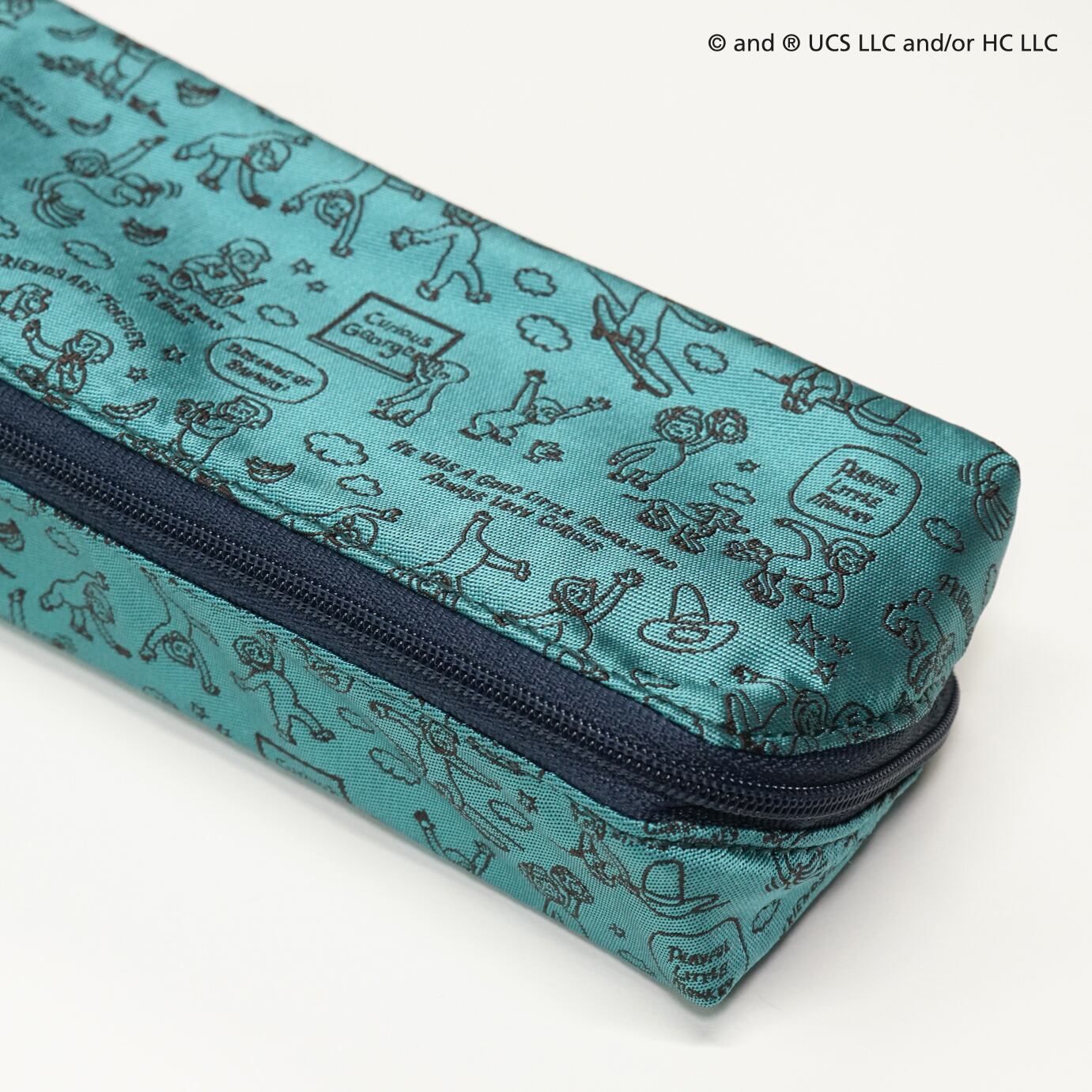 おさるのジョージ/PACAPO・スリムポーチ(ラインアート柄・ターコイズグリーン)
