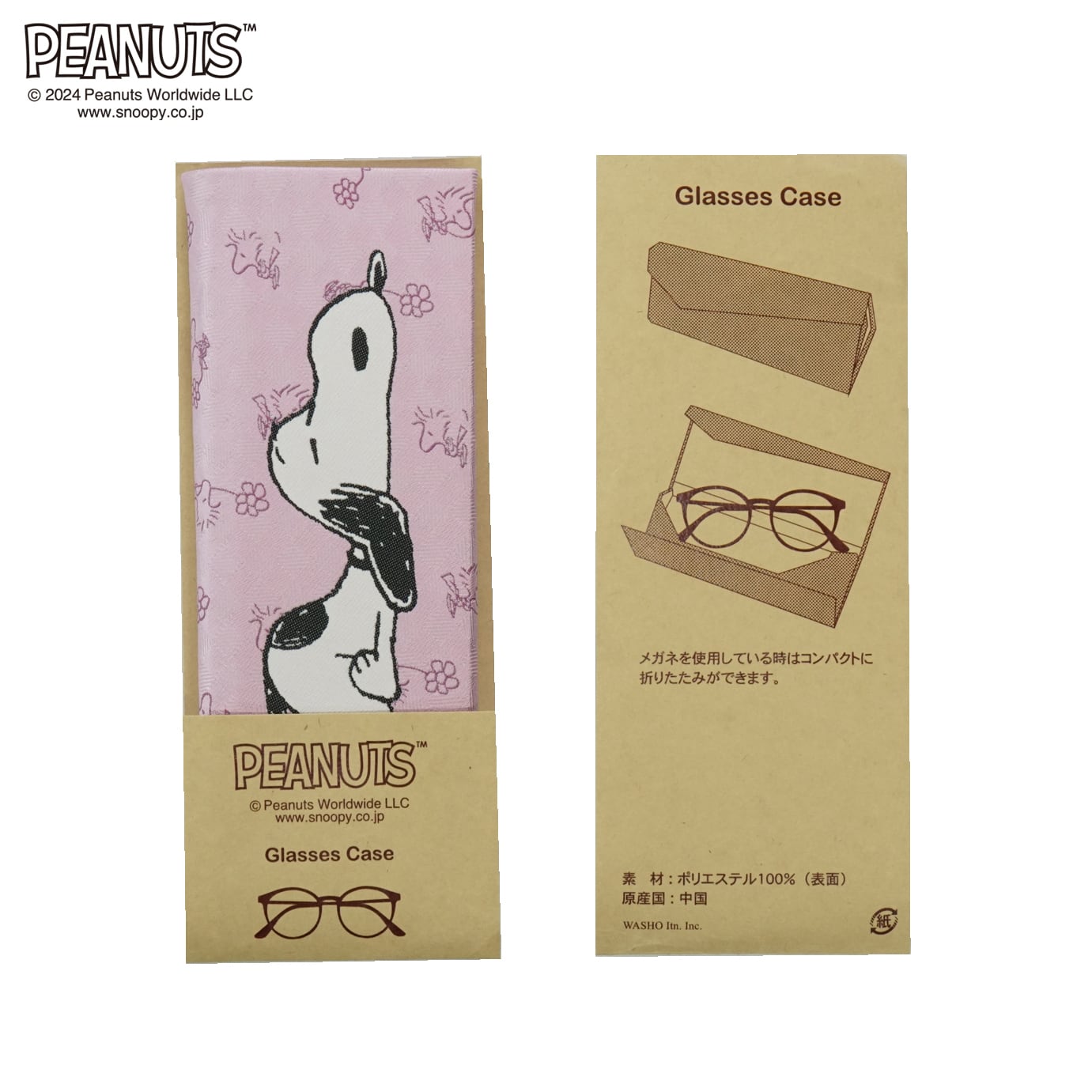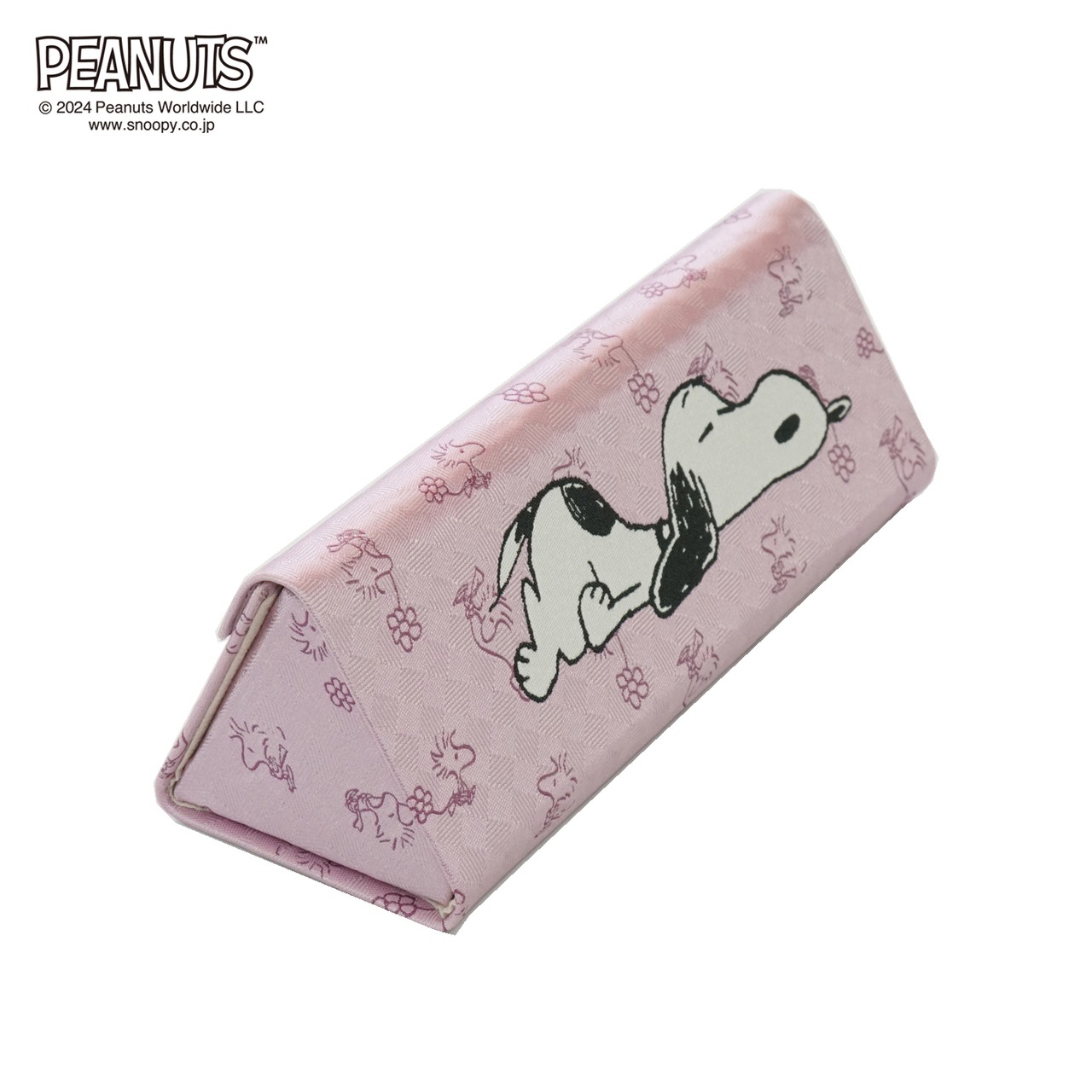 スヌーピーの柄で可愛らしくデザインされた、折りたためるスリムなメガネケース。